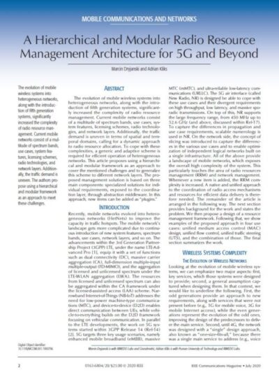 „A Hierarchical and Modular Radio Resource Management Architecture for 5G and Beyond”, Marcin Dryjanski, Adrian Kliks, July 2020, IEEE Communications Magazine