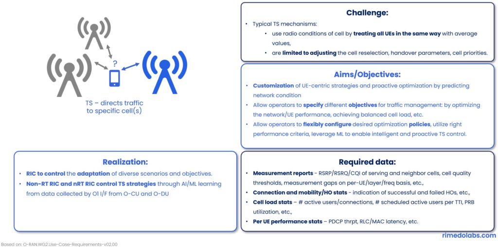 Let’s now take a look at one of the use cases, namely Traffic Steering (TS). Fig. 2. shows the aspects related to this use case to setup the scene as per [2].