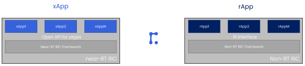 If we compare both, an xApp is slightly different from rApp, but the concept is similar: they are working as independent applications at the Near-RT RIC or Non-RT RIC respectively; they need to fulfill the requirements for the open API to be able to communicate with the other part of the RIC. The important difference, though is that an xApp directly controls an actual function within the RAN element, while an rApp is used within the Non-RT RIC framework helping to create policies (i.e. indirectly influence particular function). Another difference is that xApps and rApps work on different time scales.